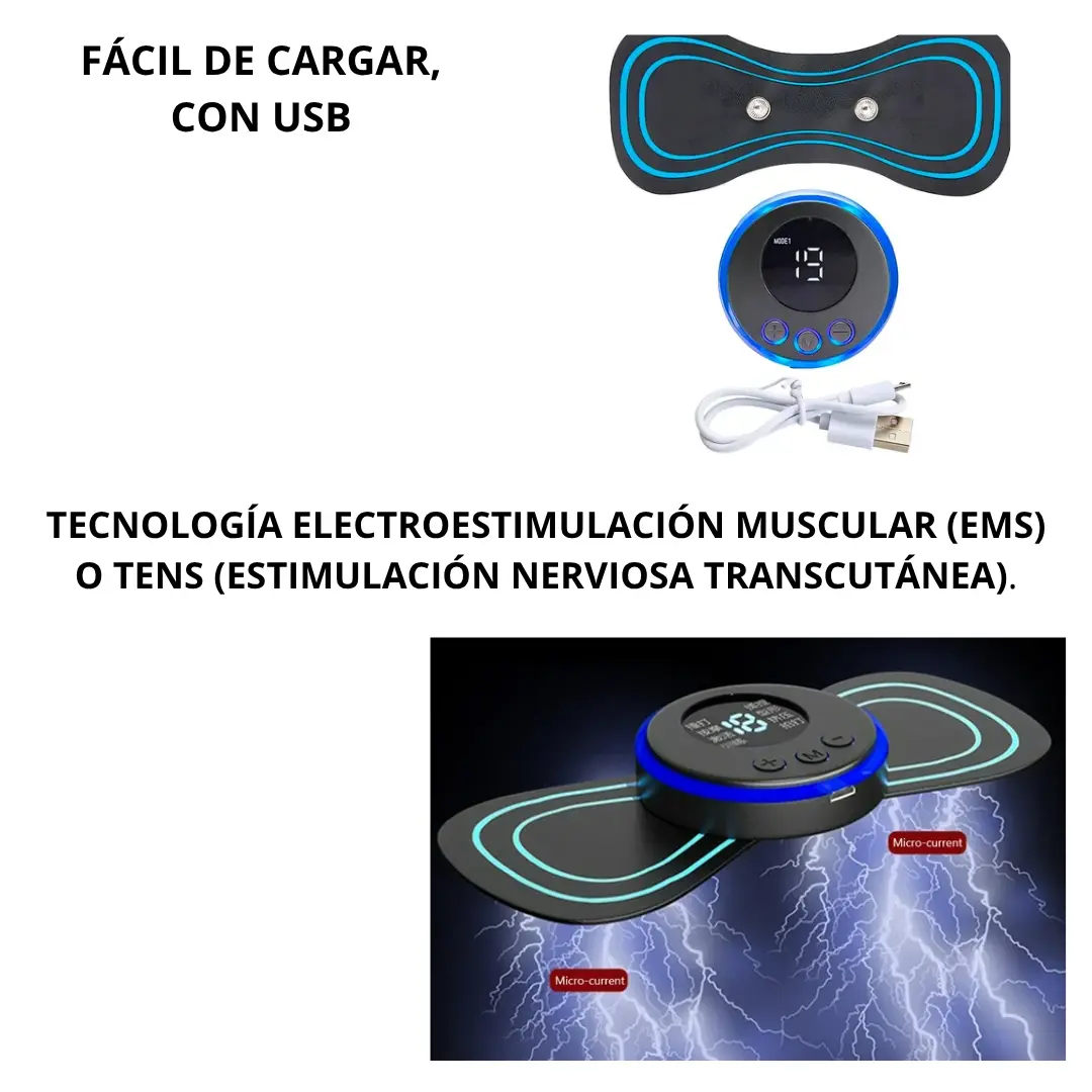 Su armado y uso son súper sencillos, solo tenés que colocar la unidad central sobre las almohadillas, adherir el masajeador a la zona del cuerpo que querés tratar, encenderlo y elegir el modo e intensidad que prefieras .