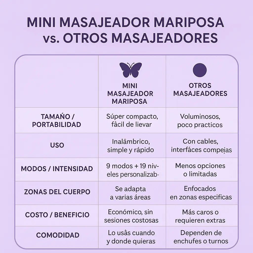 Olvidate de las costosas sesiones de kinesiología y de esperar turnos eternos. Con el mini masajeador mariposa portátil , podés disfrutar de alivio y relajación inmediata desde casa, el trabajo, el auto…